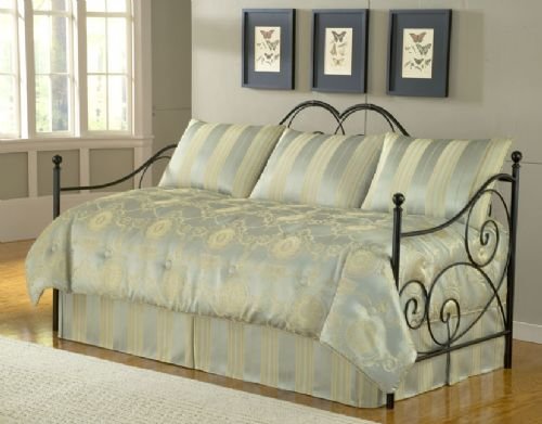 [***INCLUDED IN THIS SET: (1)Zebra Daybed Ensemble] Bring the an exotic flair to your bedroom with safari daybed bedding from Kimlor. The Zebra Daybed Ensemble features a funky zebra print in black and white. The daybed ensemble is a 50/50 polyester/cotton blend percale prints and includes a daybed comforter, 14'' dust ruffle, and 3 standard shams. The comforter is 60'' W x 96'' D and is machine washable. Features: -Pattern is a zebra print -Daybed ensemble includes a daybed comforter, 14'' dust ruffle, and 3 standard shams -Complete the set with the Zebra Bolster Pillow, Zebra Square Pillow, Zebra Euro Pillow, Zebra Drapes, Zebra Valance -Euro pillow is brown and white with a zebra picture -Made of 50/50 polyester and cotton blend percale prints - Machine Washable Specifications: -Daybed comforter: 60'' W x 96'' D -Bolster pillow: 9'' W x 21'' D -Square pillow: 18'' W x 18'' D -Drapes: 42'' W x 84'' D -Valance: 88'' W x 18'' D